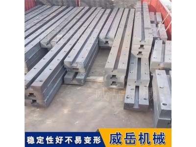 铸铁地轨--T型槽地轨主要用于大型设备的装配、试验、铸铁和检验.这样不用做成大型的平台,地轨具体规格可根据需方图纸制作或双方商定生产加工。根据设备的固定点来设计、拼接成铸梁平台。即节省了材料成本,又可以占用很小的空间,可谓是性价比很高。完全可以替代大型装配平台、铸铁平板、装配平板等,能够满足冶金设备、建材设备、矿山设备、造船等大型设备制造、组装、装配等工作。度铸铁HT200-300工作面硬度为HB170-240经过两次人工处理(人工退火600度-700度和自然时效2-3年)使该产品的精度稳定,耐磨性能好。铸铁地轨长度规格可以做成500mm4000mm以内的各种规格。外形尺寸、每米长度重量要根据客户要求承重来确定,威岳公司免费为客户设计图纸、提供前期服务!多年来,我公司以合理的、高品质的产品、周到的售后服务赢得了市场的信誉。同时为了方便用户,可根据客户要求加工订做各种铸件、非标准量具地梁、T型槽铸铁地轨、十字槽铸铁平台、铸铁试验平台等产品。