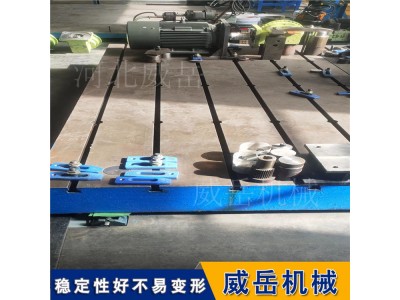 铸铁T型槽平台是用于动力机械设备的装配、调试、焊接、铆焊用的基准的平台。可以固定机械设备,特殊规格可根据用户需求制造。精度按国家标准计量检定规程JJG117-91执行,分别为3级、精刨。工作面采用刮研工艺,用涂色法进行检验,保证了平面精度。工作面一般开有T型槽,也可根据要求加工长孔或圆孔等。